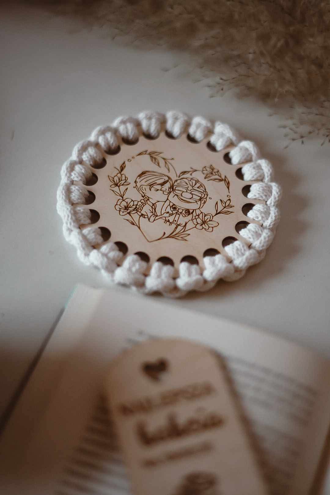 Drewniane tabliczki z wyciętymi napisami, takimi jak „Anioł Stróż Babci” czy „Anioł Stróż Dziadka”, stanowią wspaniałą bazę do makramowych dekoracji. Używając naturalnych sznurków i dodając delikatne ozdoby, możesz stworzyć prezent pełen ciepła i czułości.