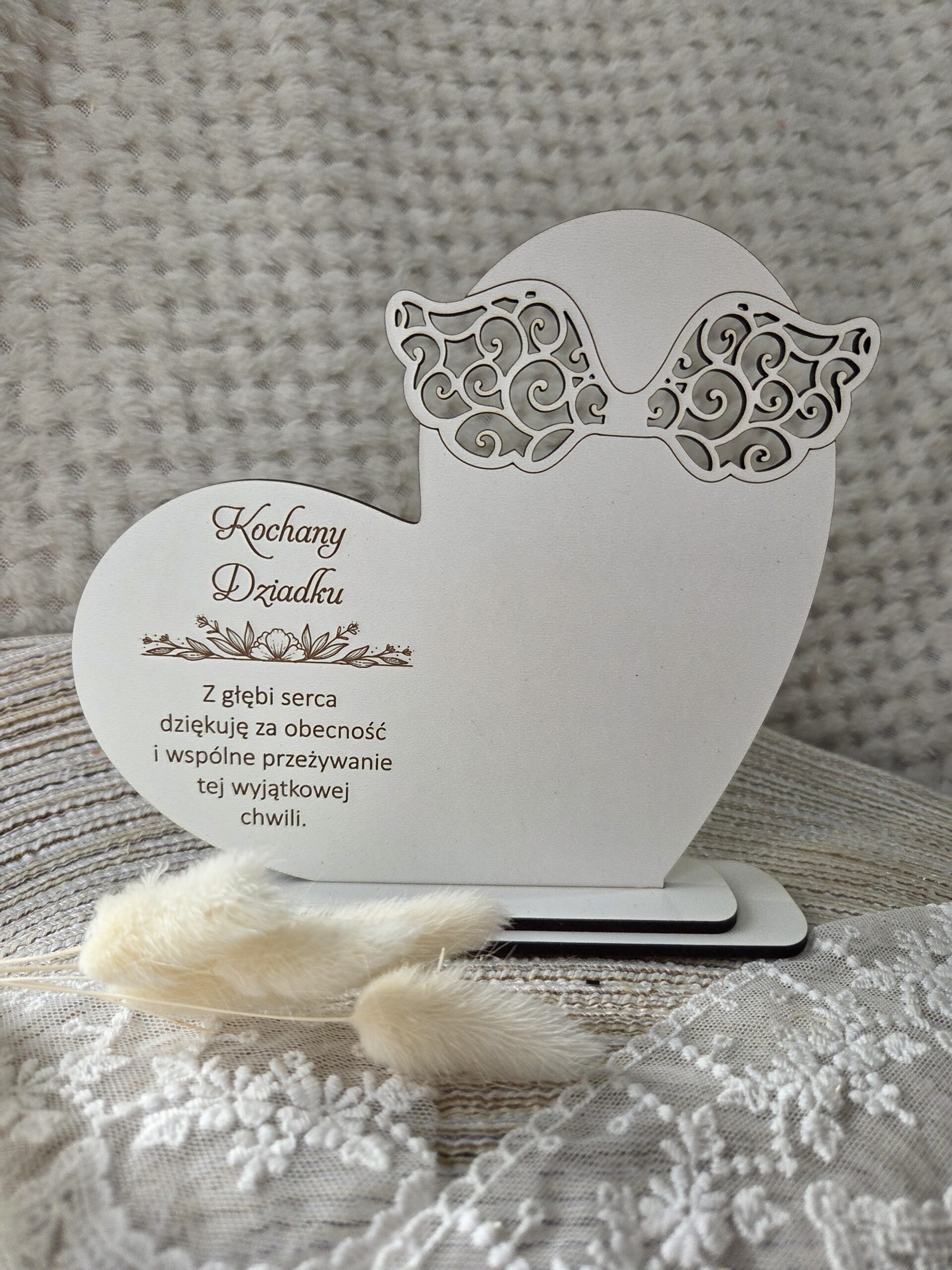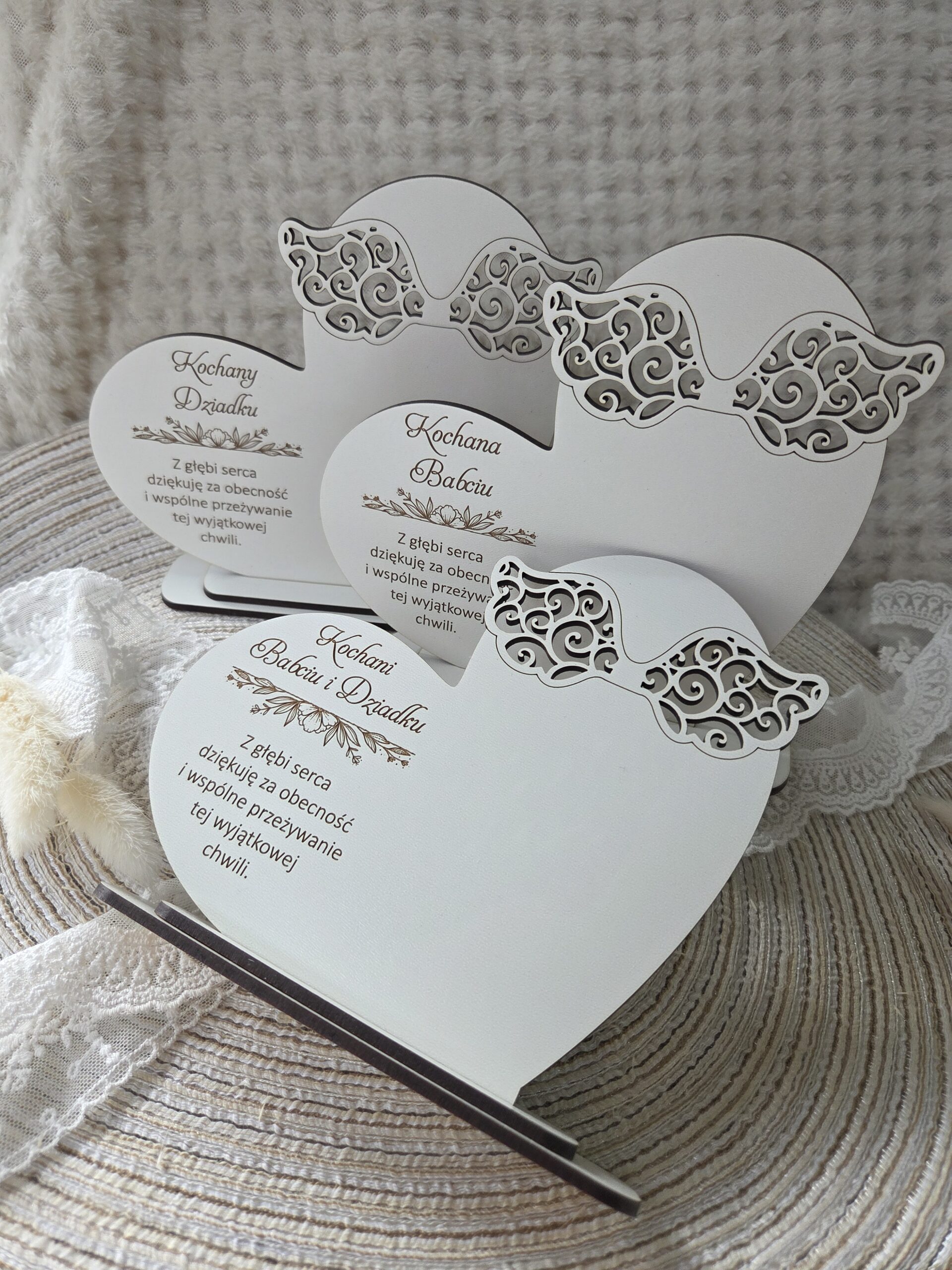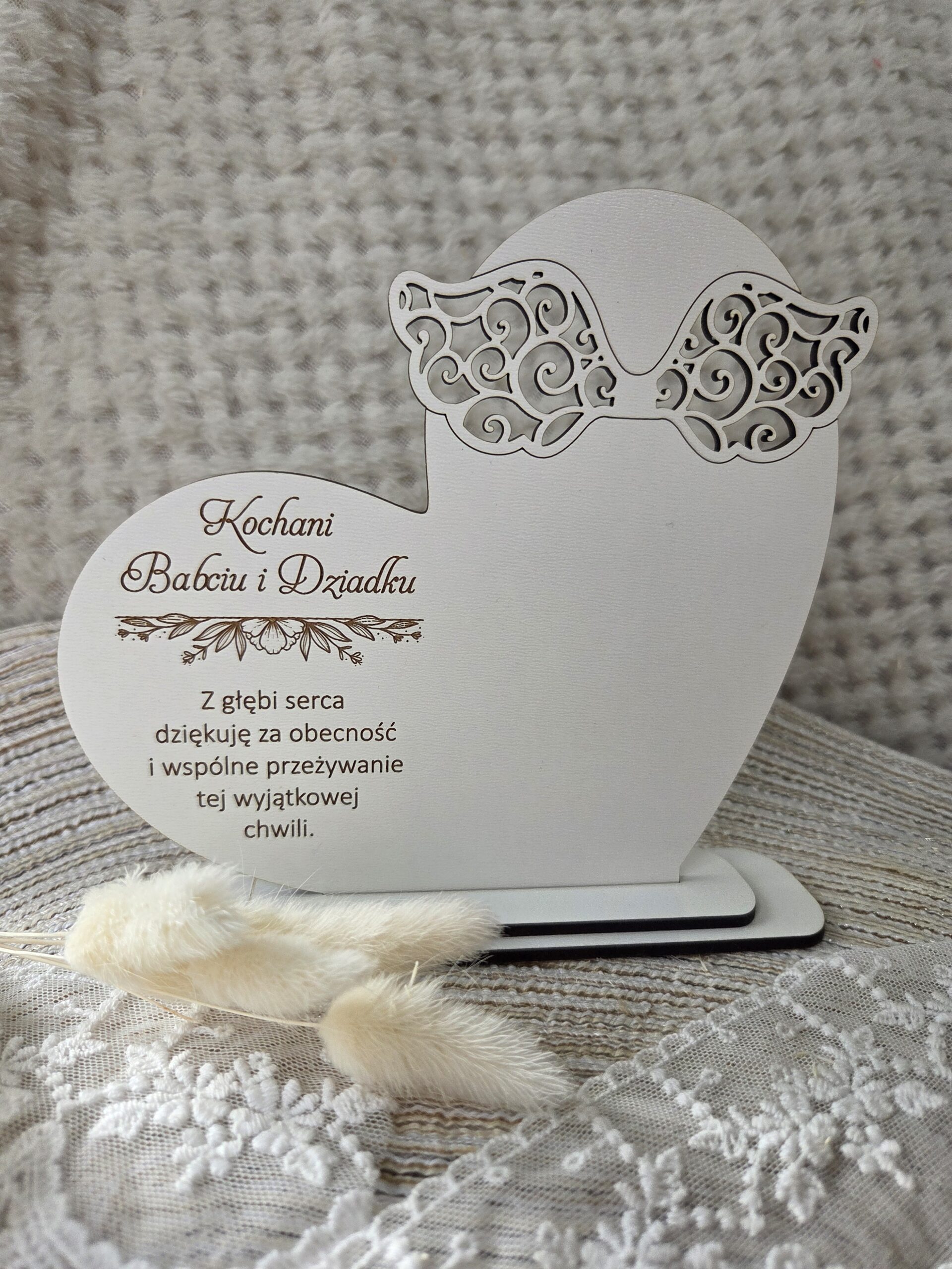 Gotowa do personalizacji: Na bazie możesz z łatwością nakleić napisy ze sklejki („Dla Kochanych Dziadków”), imiona wnuków lub datę uroczystości, tworząc unikalne podziękowanie DIY.