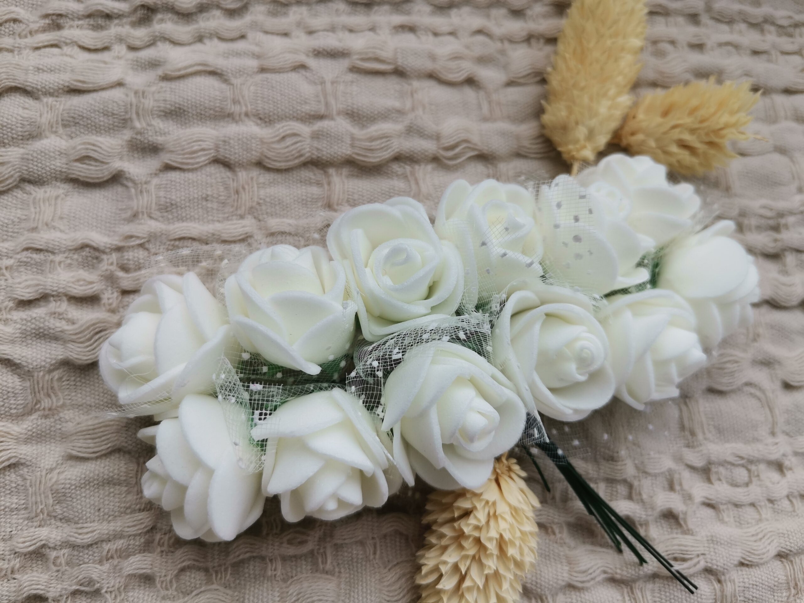 Kwiaty piankowe z tiulem białe 2cm 12szt do kartek, prac z makramy K70Availability: Na stanie