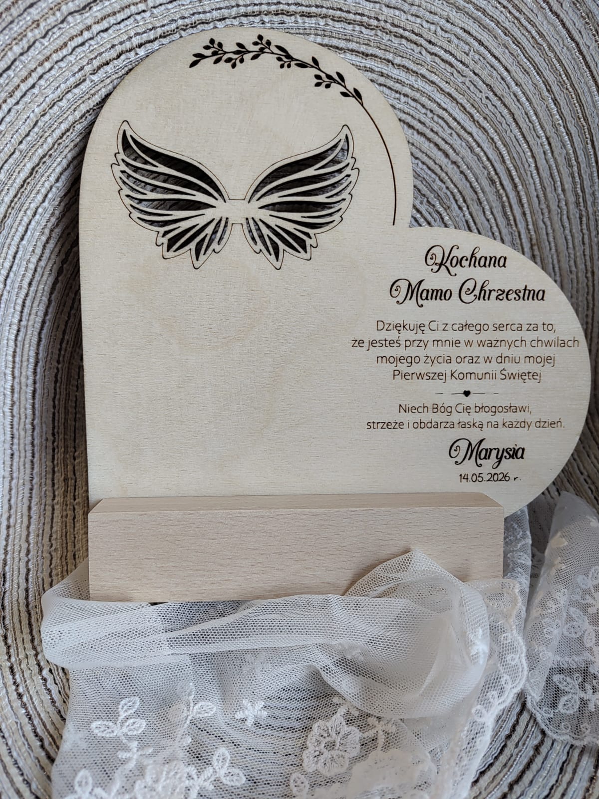 Podziękowania na I Komunię Świętą ze sklejki 18cm x 18cm 35 znaków PK14