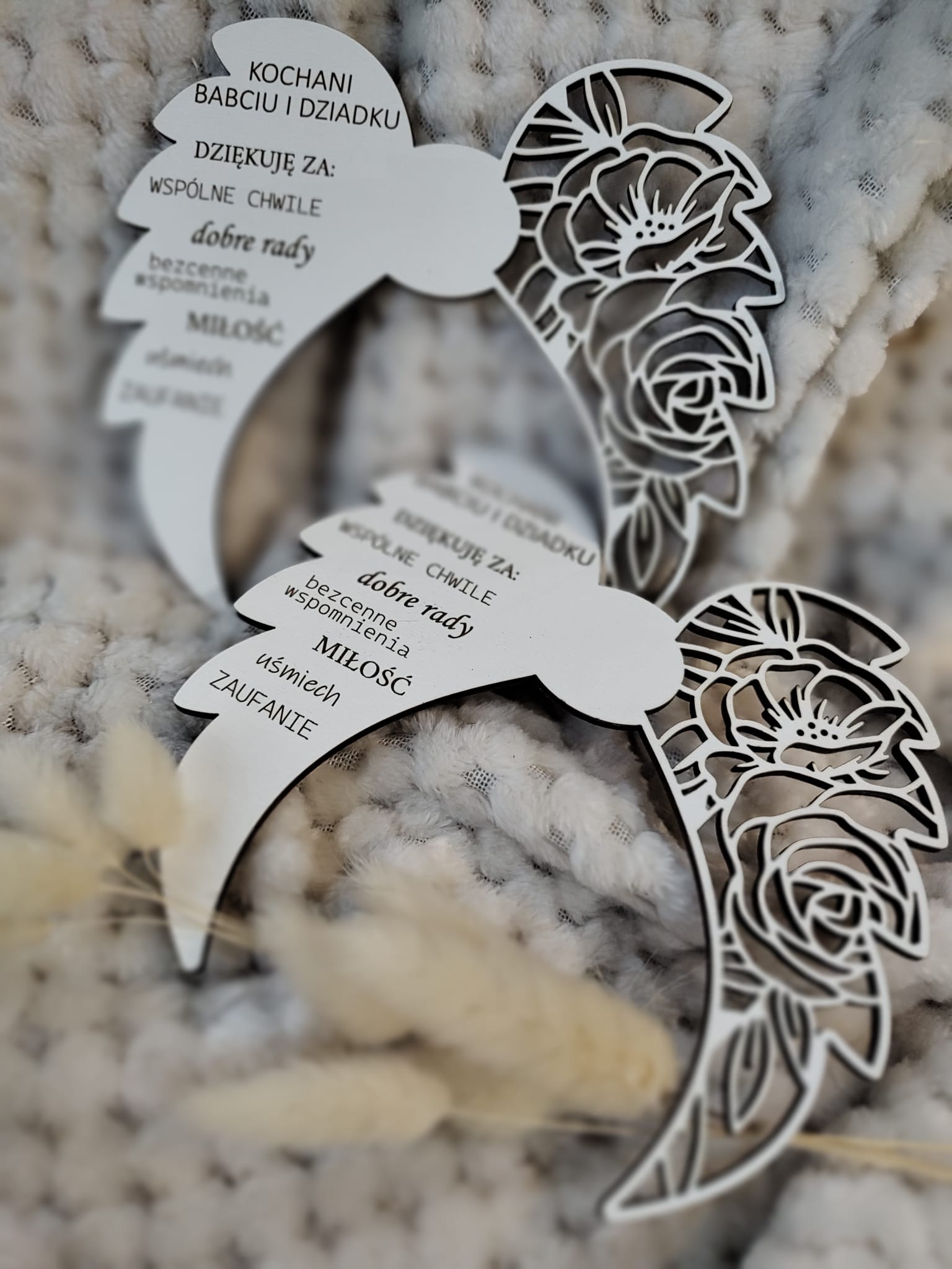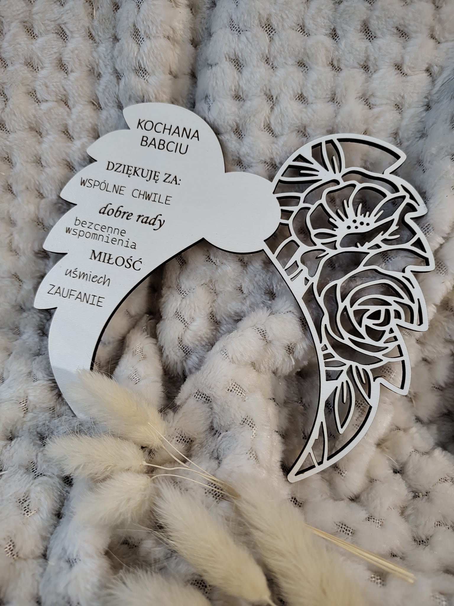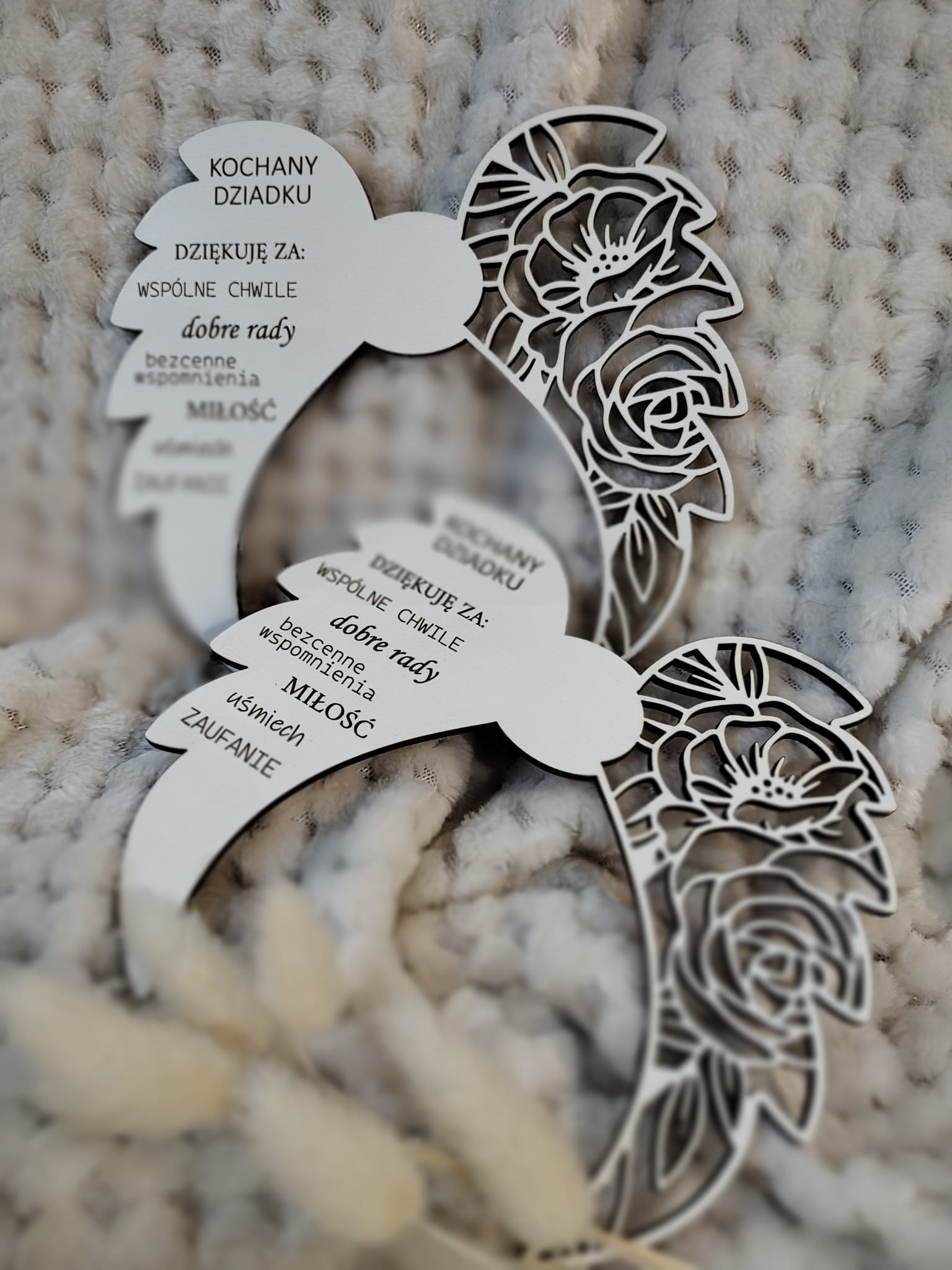 Napis na skrzydłach w formie podziękowania od wnuka