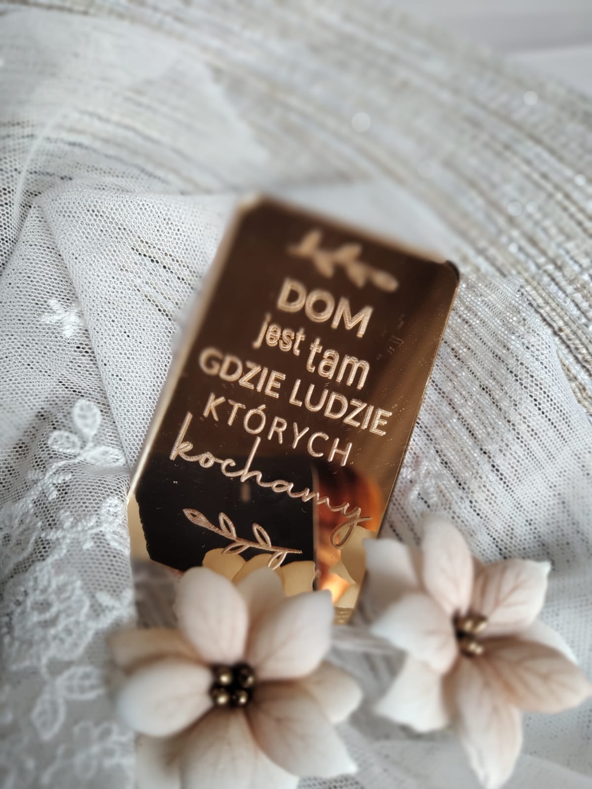 Tabliczka do aniołka z makramy złota 8cm x 5cm PL27
