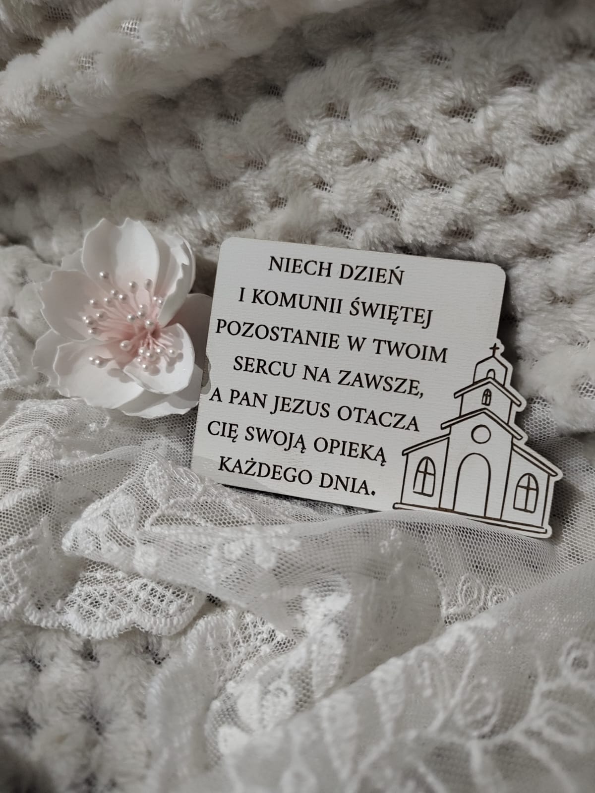 Tabliczka na I Komunię Świętą z HDF 8,5cm x 6cm H390