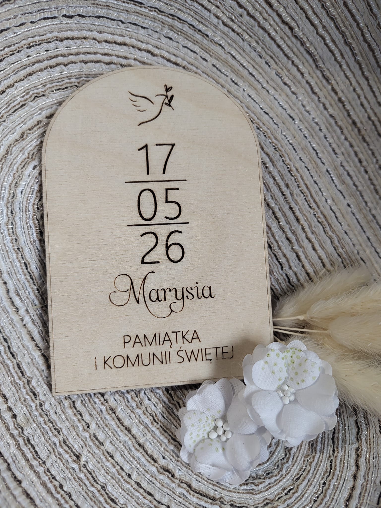 Tabliczka na I Komunię Świętą ze sklejki 11cm x 7,5cm 35 znaków N930 Tabliczka na I Komunię Świętą ze sklejki 11cm x 7,5cm 35 znaków N930