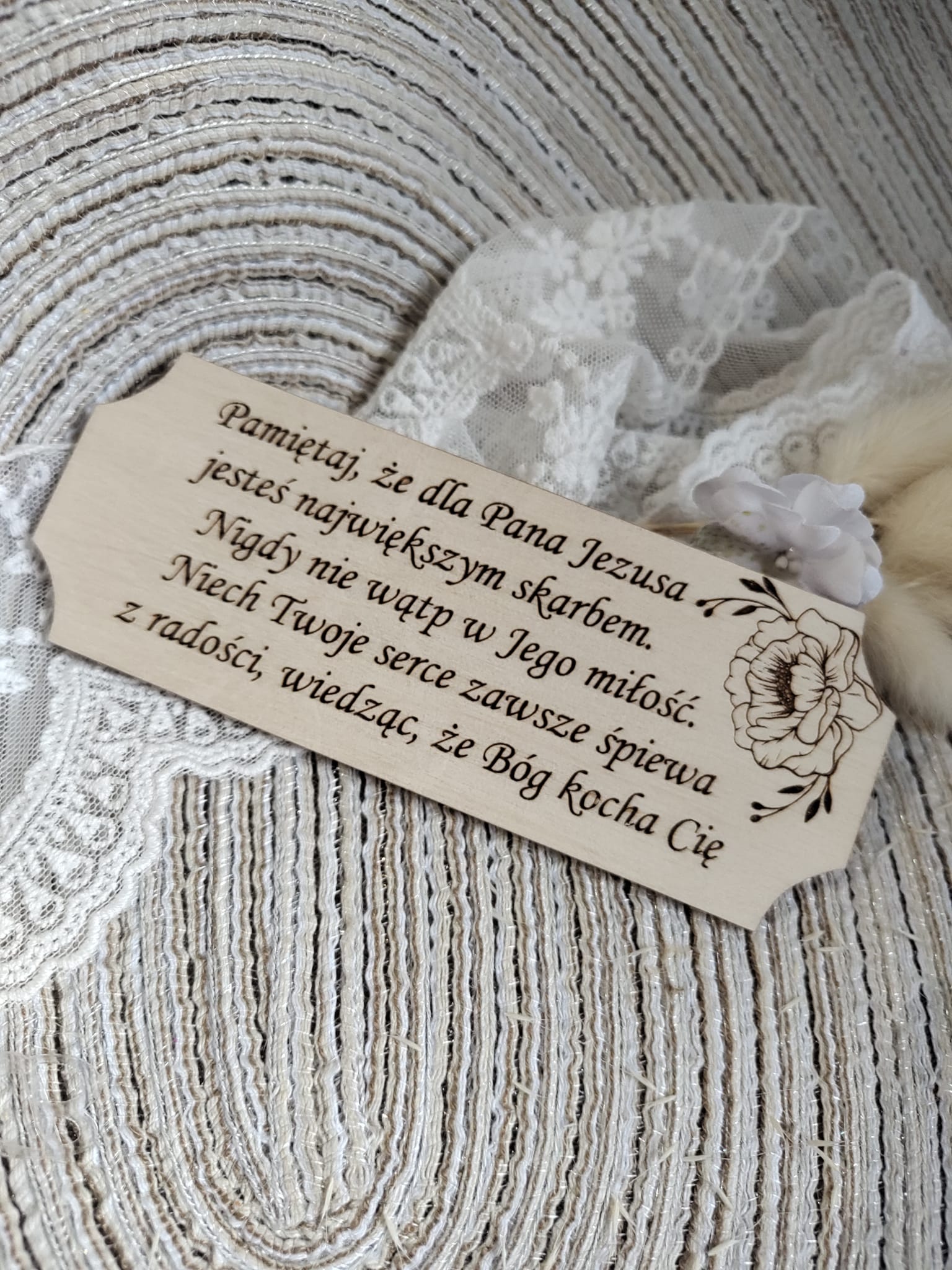 Tabliczka na I Komunię Świętą ze sklejki 13cm x 5cm N942 Tabliczka na I Komunię Świętą ze sklejki 13cm x 5cm N942