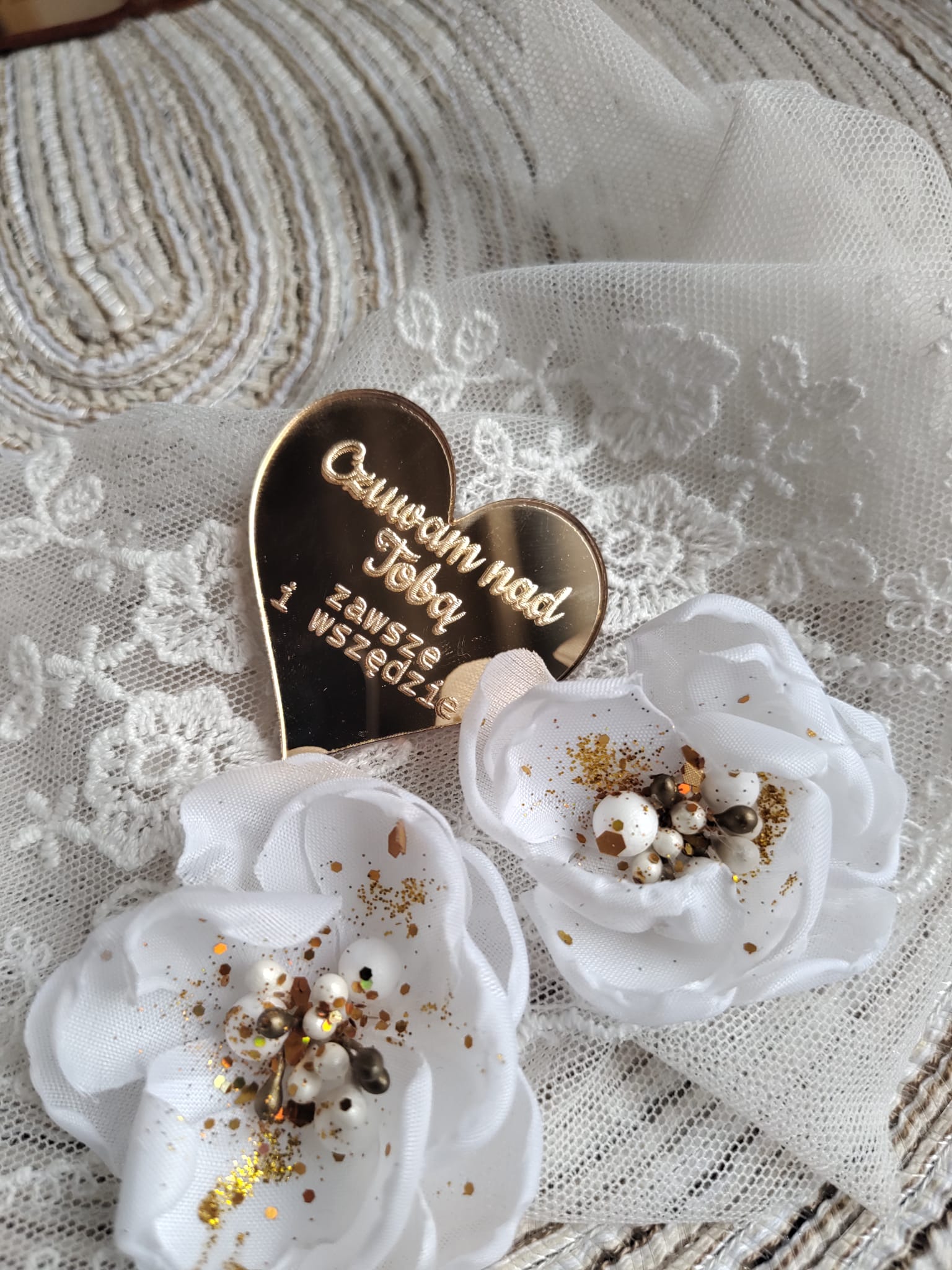 Tabliczka ze złotej plexi do aniołka z makramy