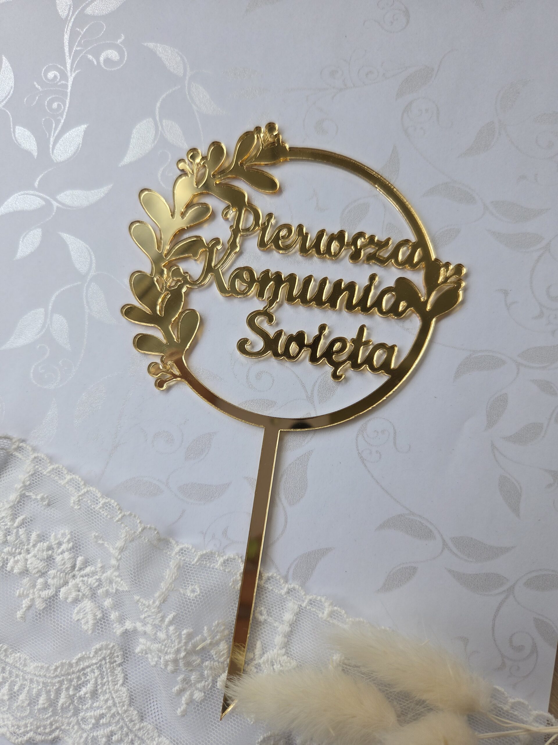 Dodaj odrobinę blasku swoim projektom dzięki naszemu topperowi wykonanemu z najwyższej jakości złotej plexi o grubości 2 mm.