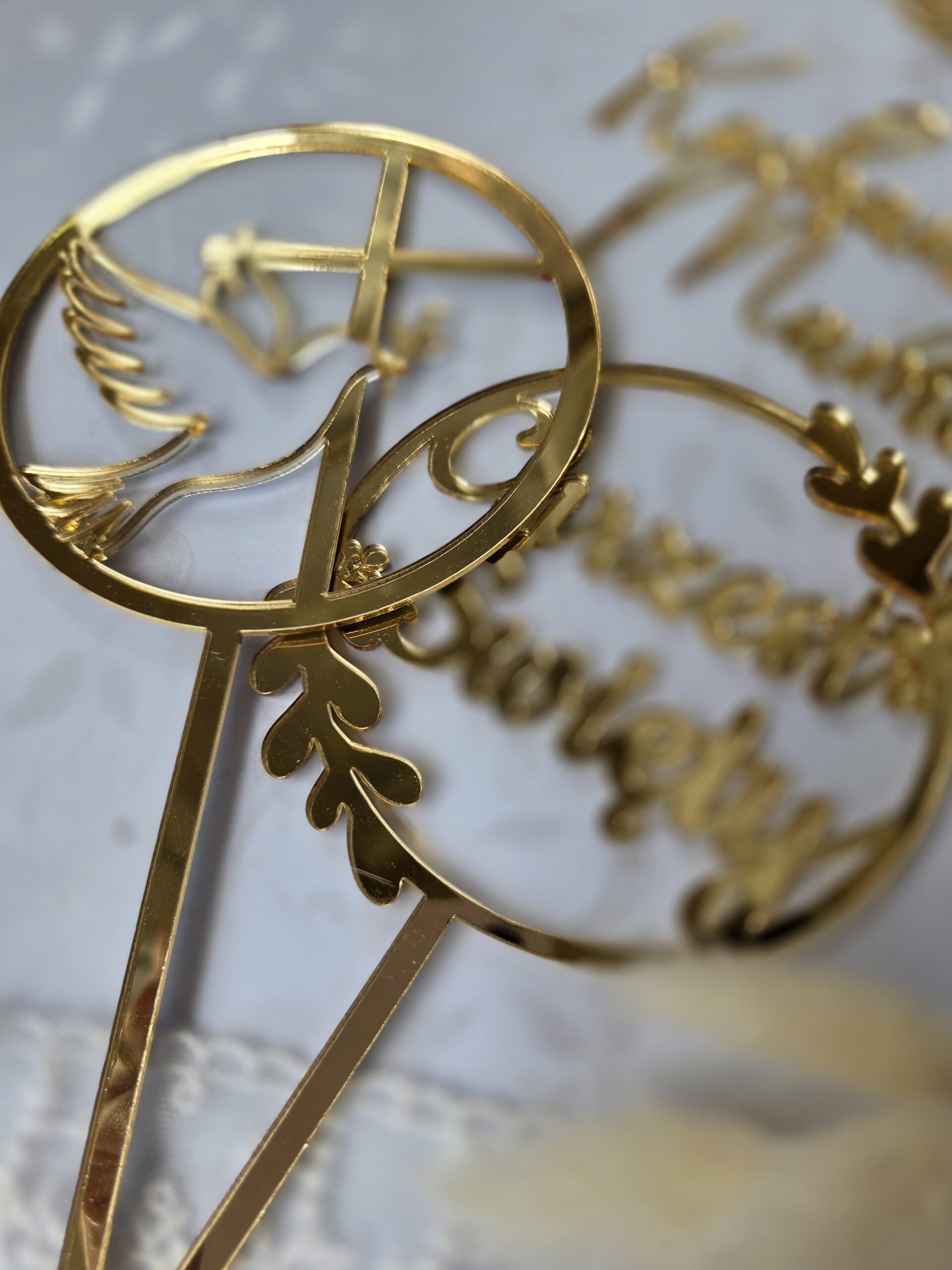 Dodaj odrobinę blasku swoim projektom dzięki naszemu topperowi wykonanemu z najwyższej jakości złotej plexi o grubości 2 mm.