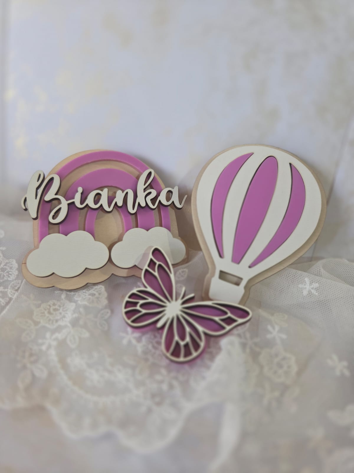 Zestaw do Metryczki 3D – Imię, Balon, Motylek, Tęcza – Komplet Dekorów KPL10